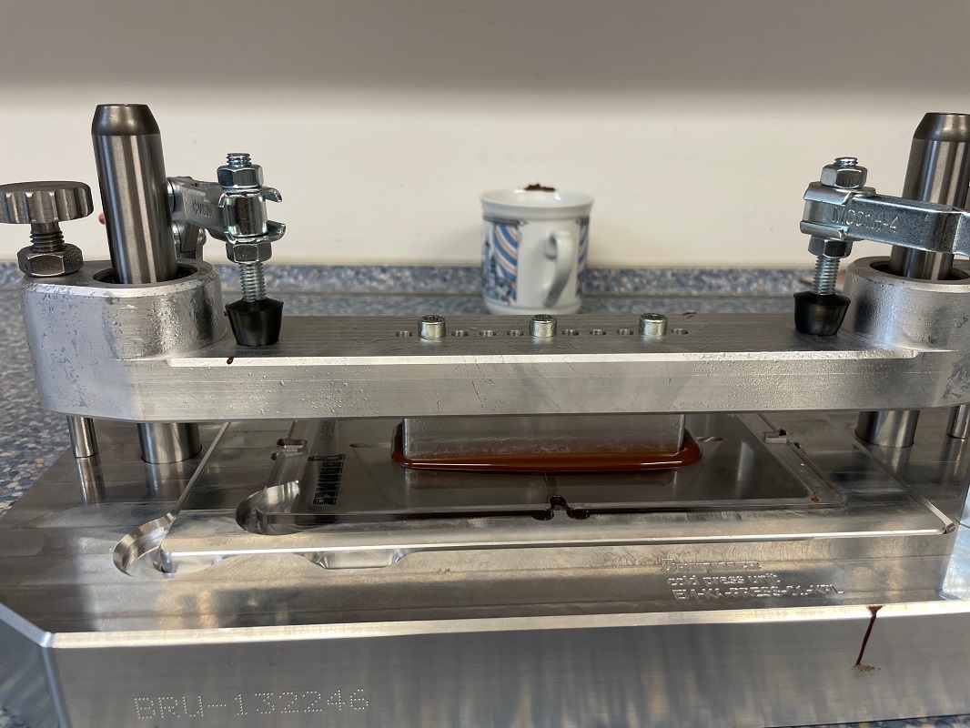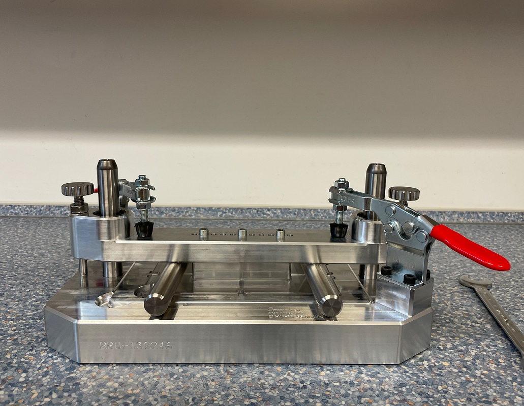 Brunner hat für diese Herausforderung eine neue manuelle Musterkaltstempel-Presse entwickelt. Mit dieser wird schon vor der Formenproduktion getestet, welche Schalenstärke / welches Schalengewicht mit welchem Kaltstempel erreicht werden kann. Gleichzeitig können auch die Auswirkungen der unterschiedlichen Schalenstärken auf die Artikelproduktion erprobt werden. Somit ist es für den Kunden schon während der Artikelentwicklung möglich, zusammen mit uns als Formenlieferanten und dem Anlagenhersteller die geeignete Artikelgestaltung zu finden. Auch erlaubt die neue Musterkaltstempel-Presse sowohl Einzelmuster zu testen als auch Kleinserien zu produzieren.