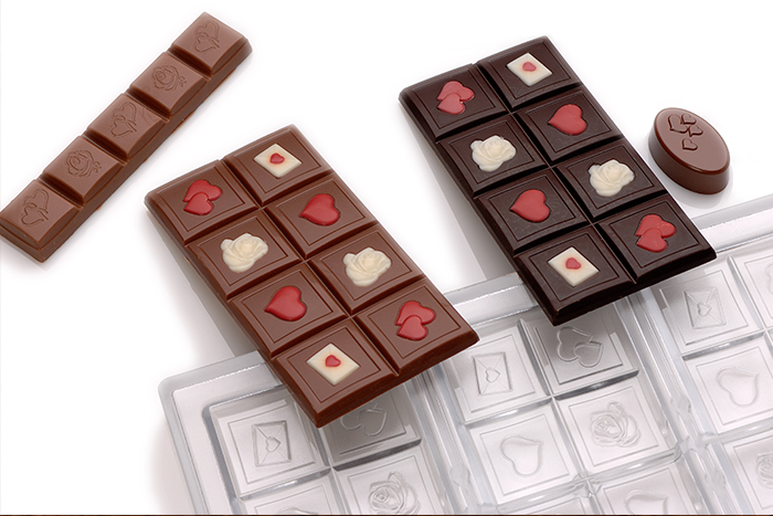 „CHOCIVIDUAL“ is a way to provide customised moulds using a combination of our design development capabilities and our thermopressing technology. These moulds are perfectly suitable for the manufacturing of personalised tablets, bars or pralines.